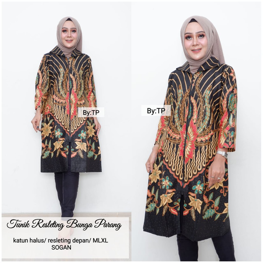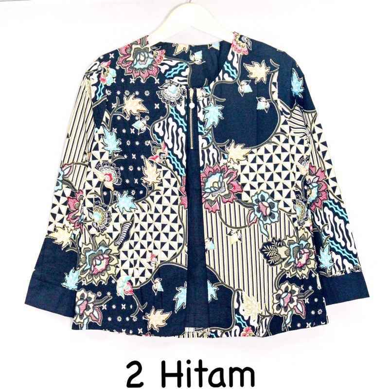 Atasan Batik Wanita Kerja Paduan Kain Polos Pakai Resleting Depan Lengan 7 8 Size Xl Bls 9562 Pbty Shopee Indonesia