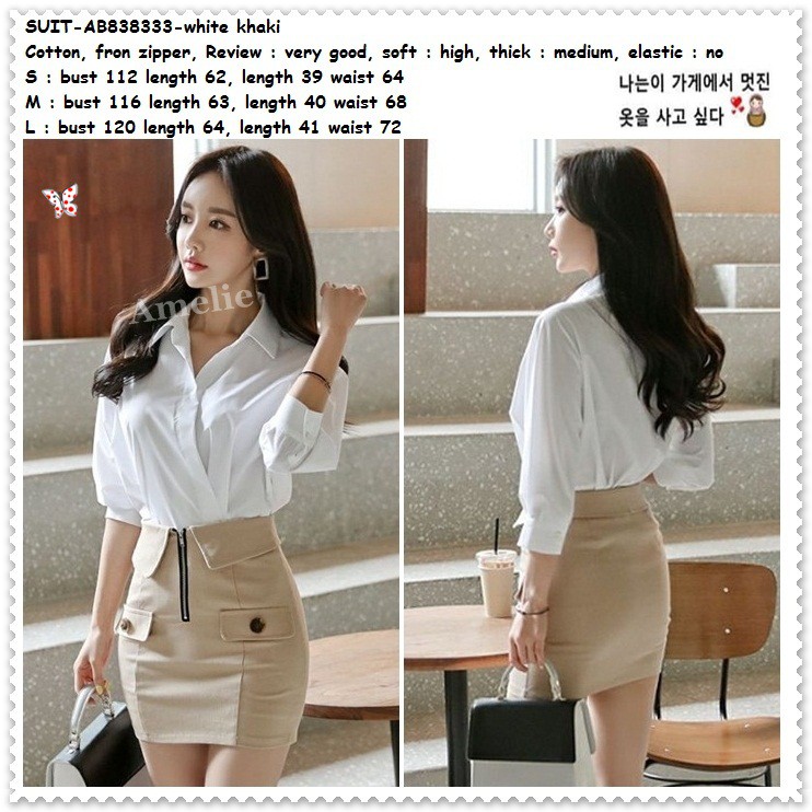 Jual Ab938590 Setelan Baju Atasan Rok Span Midi Wanita Korea Import Cream Jakarta Barat Amelie Butik Wholesale Tokopedia