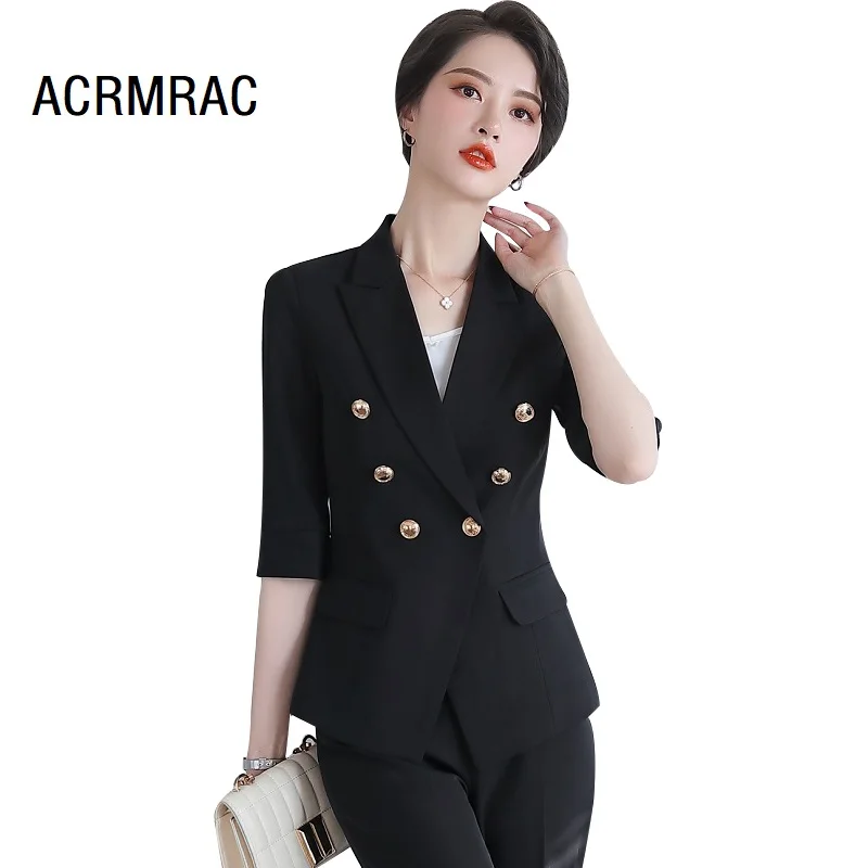 Pakaian Wanita Musim Panas Setengah Lengan Blazer Celana Kantor Formal Pakaian Kerja Wanita Setelan Celana Wanita Set Setelan 852 Celana Sesuai Dengan Aliexpress
