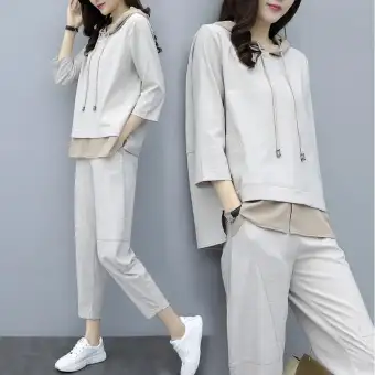 Vestline Fashion Baju Olahraga Wanita Korea Set Pakaian Kebugaran Lengan Panjang Berkudung Setelan Olahraga Longgar Dua Potong Baru Wanita 2020 Lazada Indonesia