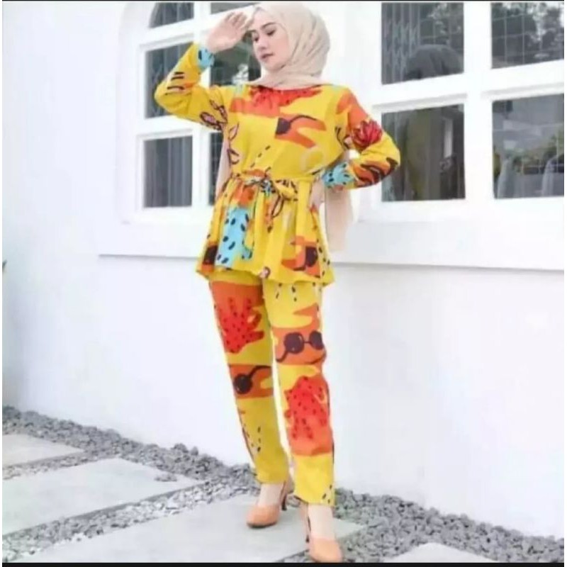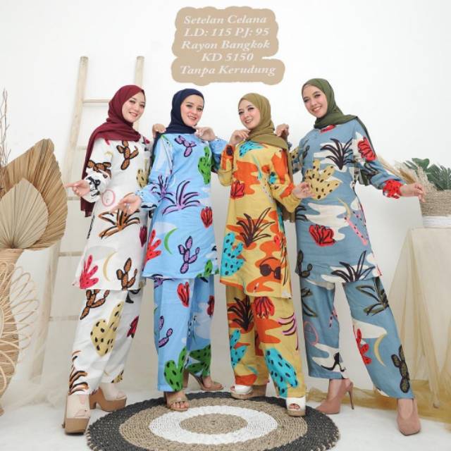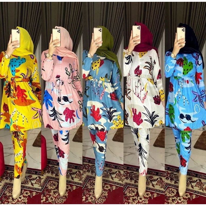 Kaktus Set Rayon Setelan Wanita Trendy Kekinian Tunik Celana Fashion Wanita Casual Terbaru 2020 Shopee Indonesia