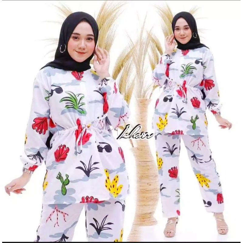 Jual Baju Setelan Wanita Muslim Sarah Set Motif Kaktus Cantik Kota Surakarta Ytyt Store Tokopedia