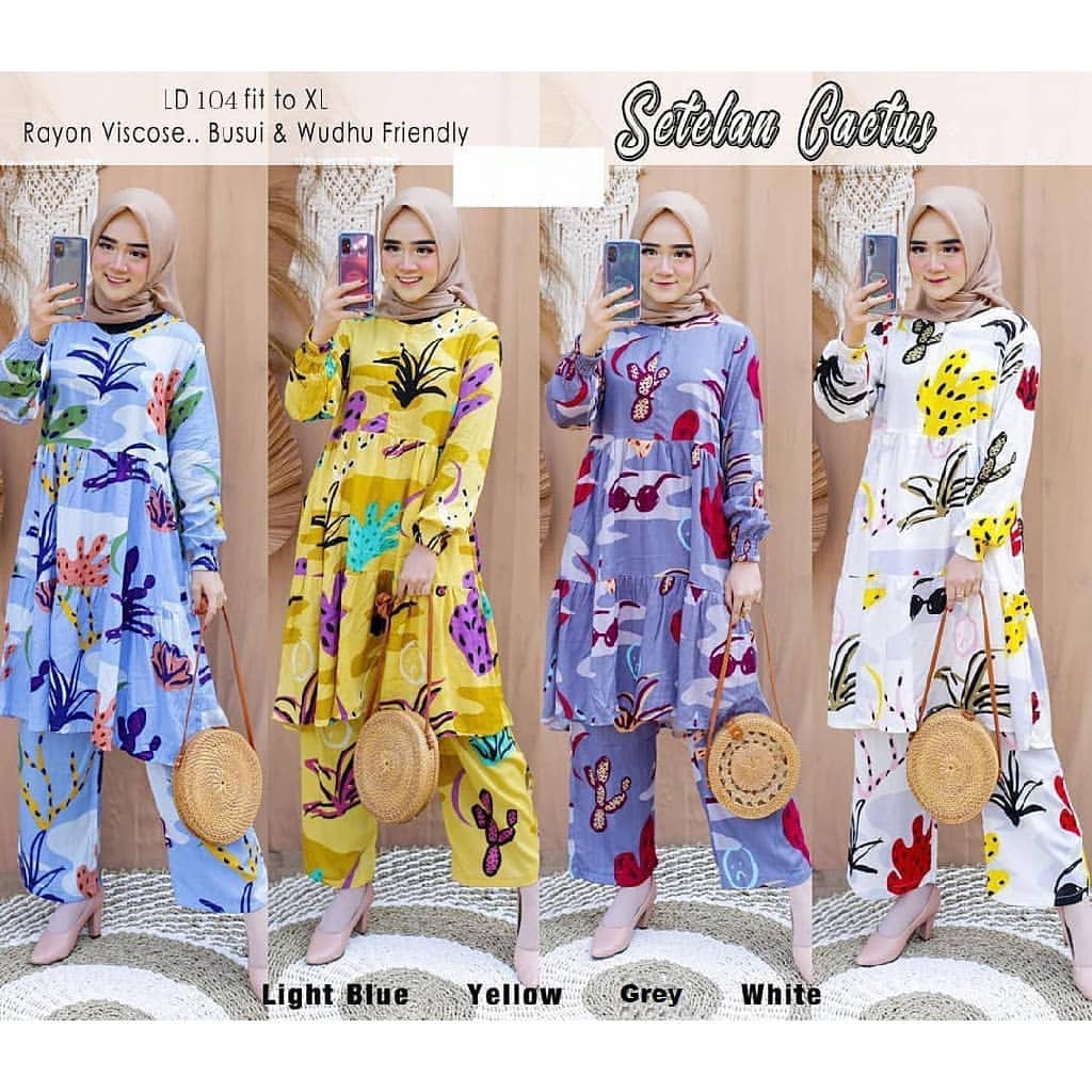 Setelan Muslim Motif Kaktus Terbaru 2020 Kekinian Remaja Dan Dewasa Ootd Hijab Setelan Kaktus Shopee Indonesia