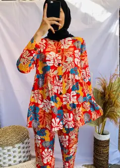 One Set Setelan Terbaru Setelan Katun Rayon Pakaian Wanita 2020 S Vi597 Pajamas Set Celana Muslim B Shopee Indonesia