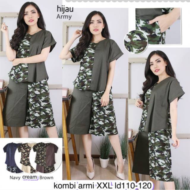 Pakaian Wanita Setelan Wanita Setelan Army Kombi Blouse Dan Kulot Katun Stretd Shopee Indonesia