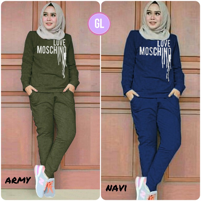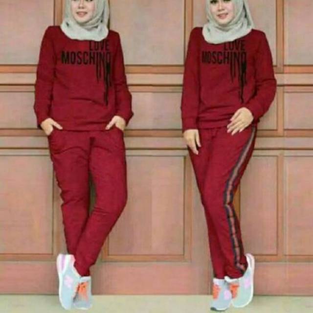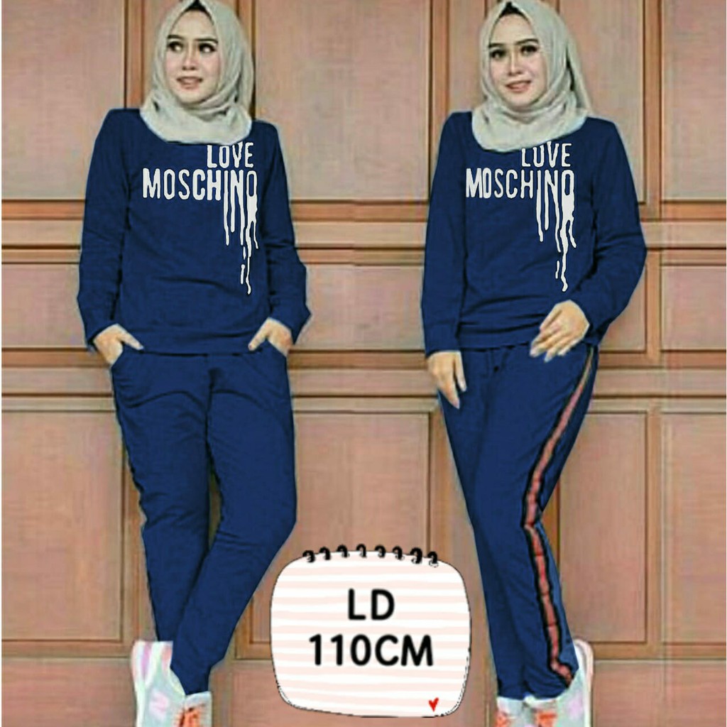 Setelan Baju Olahraga Wanita Muslimah Celana Training Senam Muslim Love Moschino Ukuran Xl Ld 110 Shopee Indonesia