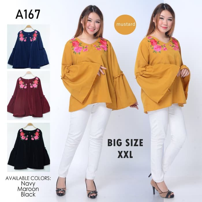 Baju Atasan Wanita Jumbo Mikayla Blouse Jumbo 7l Baju Jumbo Elegant Ld 136 Cm Shopee Indonesia