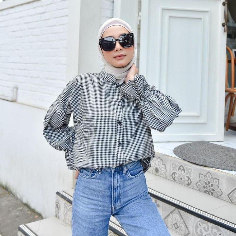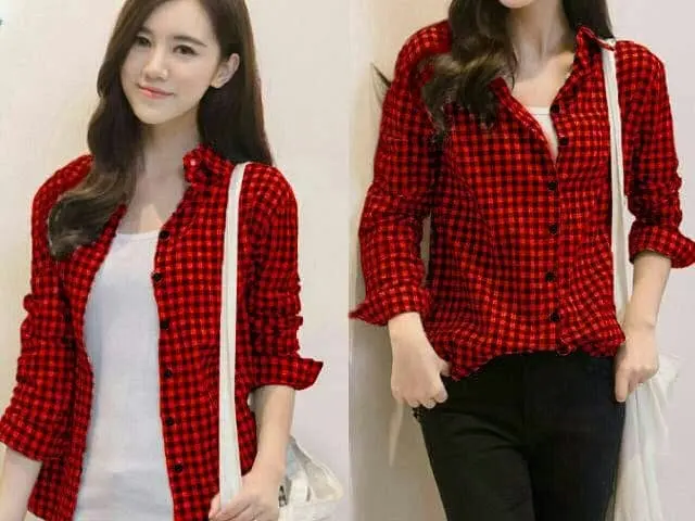Kemeja Wanita Casual Atasan Perempuan Kasual Baju Cewek Gaya Kekinian Model Korean Style Terbaru 2020 Remaja Dewasa Murah Import Ala Korea Atasan Wanita Baju Blouse Kemeja Kotak Jumbo Blus Square Big Size