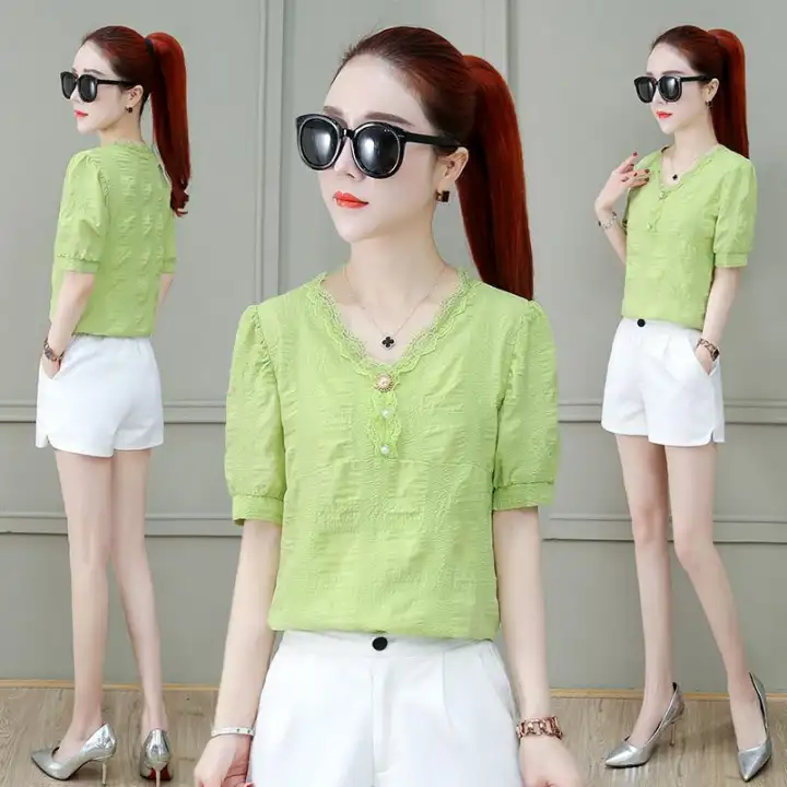 Wanita Fesyen Tops Blaus Warna Pepejal Baju V Neck Butang Lengan Pendek Baju Wanita Korea Gaya Chiffon Blouse Wanita Plus Saiz M 3xl 2020 Baru Lazada