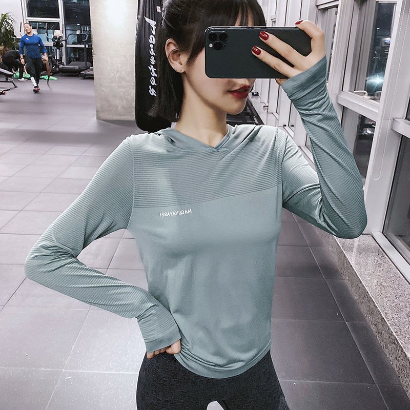 Fashion Pakaian Kebugaran Wanita Lengan Panjang Blaus Wanita Yang Cepat Kering Memakai Pakaian Yoga Bertudung Longgar Di Atas Pasang Pakaian Sukan Shopee Malaysia
