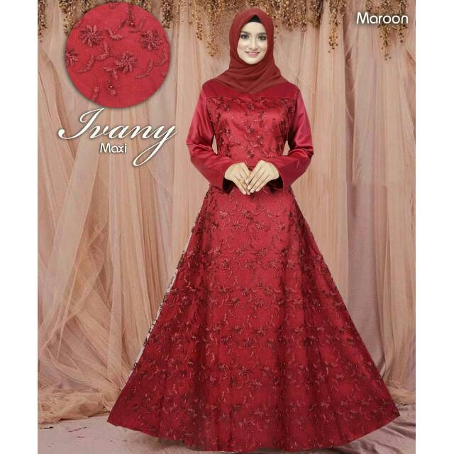 Gamis Pesta Mewah Maxi Azalia Maroon Bahan Brukat Tile Kombinasi Satin Velvet Busui Ld 110 Shopee Indonesia