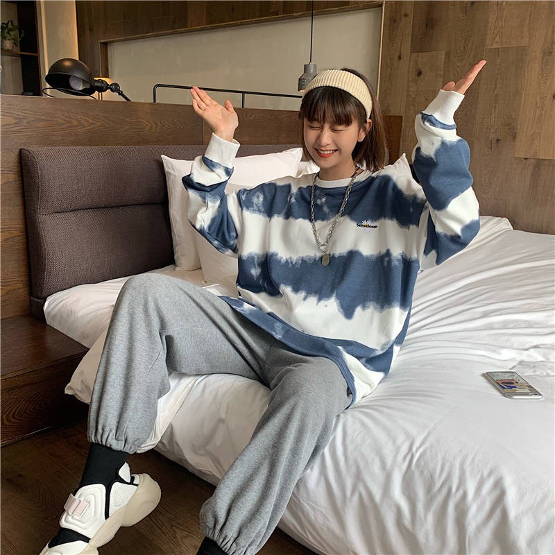 Baju T Shirt Perempuan Blouse Labuh 2020 Musim Luruh Gaya Baru Korea Kemeja Lengan Panjang Wanita Dasi Dye Pelajar Longgar T Shirt Wanita Jaring Merah Gaya Yang Sama Pakaian Wanita Trend Shopee Malaysia