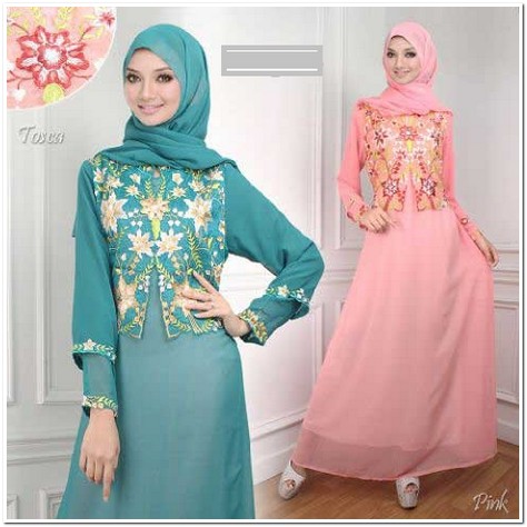 32 Model Baju Gamis Motif Bunga Modern 2020 Muda Co Id